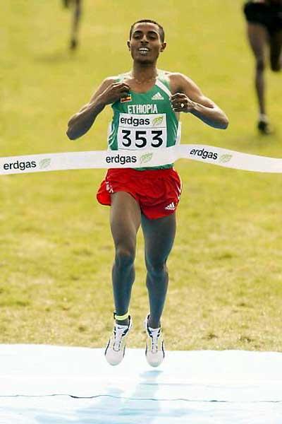 Kenenisa Bekele crosses the finish line to win the men's World short course title in Lausanne
