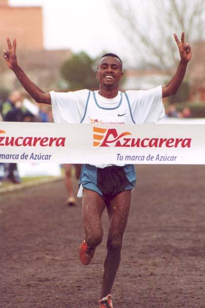 Sileshi Sihine of Ethiopia (357) running the 2003 World Cross long race in Lausanne