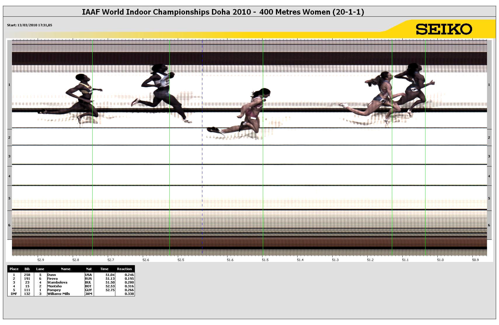 POS | BIB | ATHLETE | COUNTRY | MARK | Reaction Time | ||