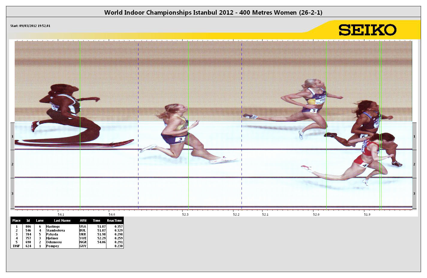 POS | BIB | ATHLETE | COUNTRY | MARK | Reaction Time | ||