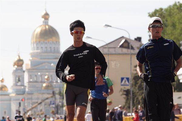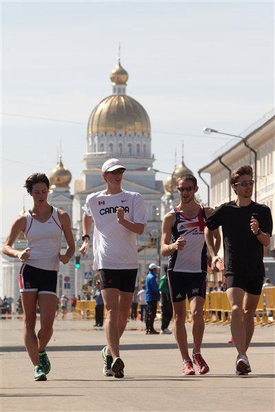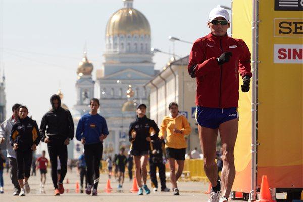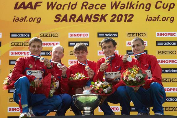 The men's 50km podium in Saransk: Igor Erokhin, Sergey Kirdyapkin and Jared Tallent