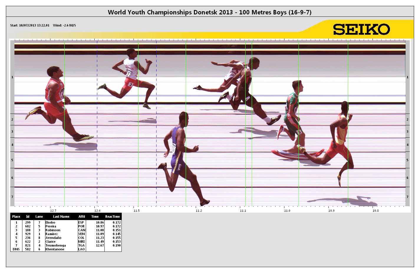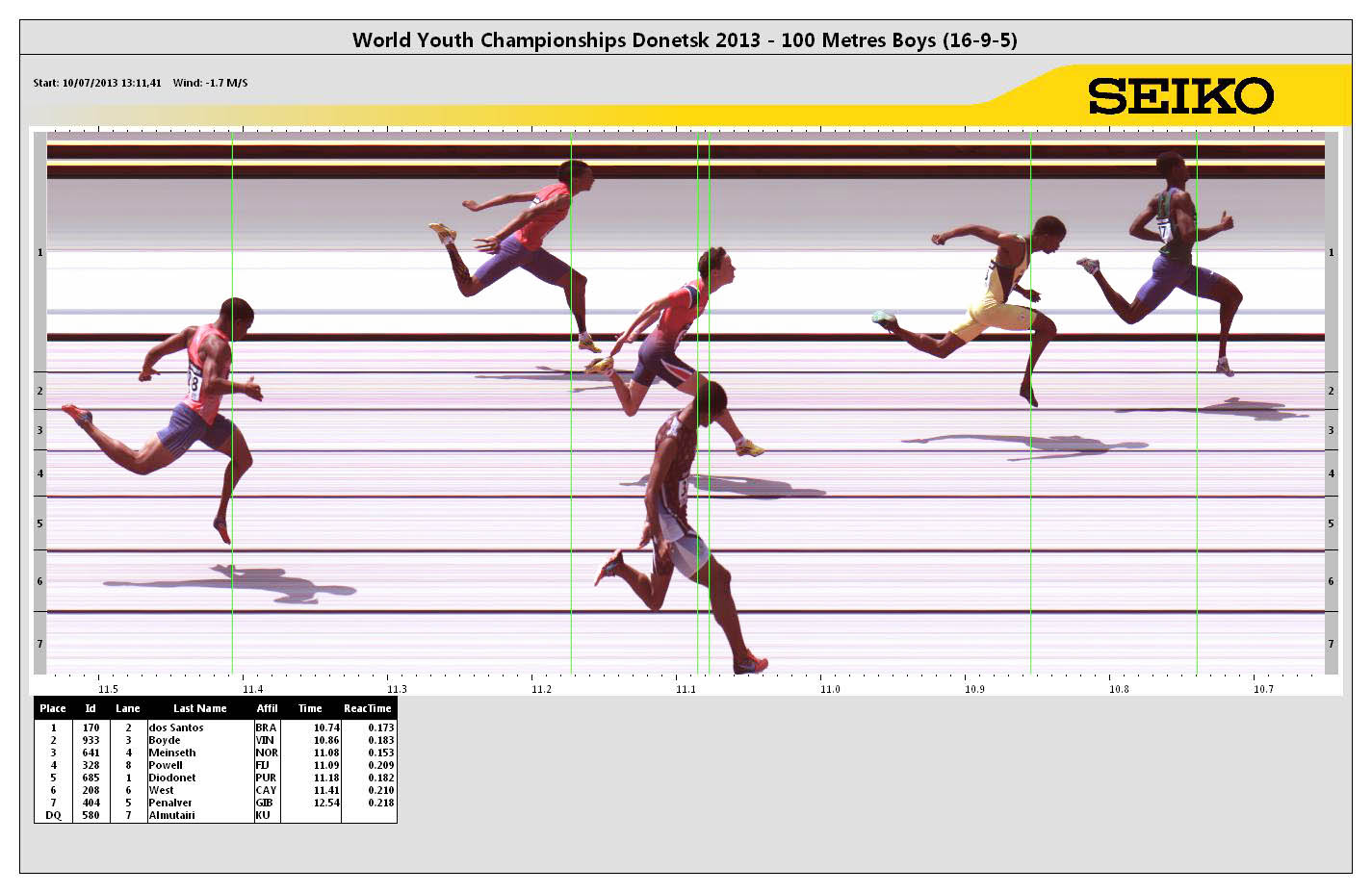 POS | BIB | ATHLETE | COUNTRY | MARK | Reaction Time | ||