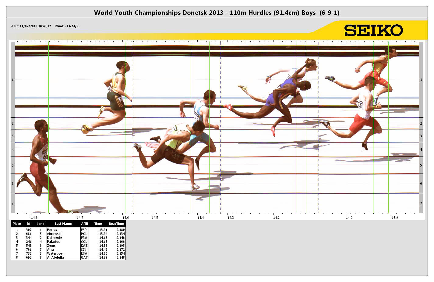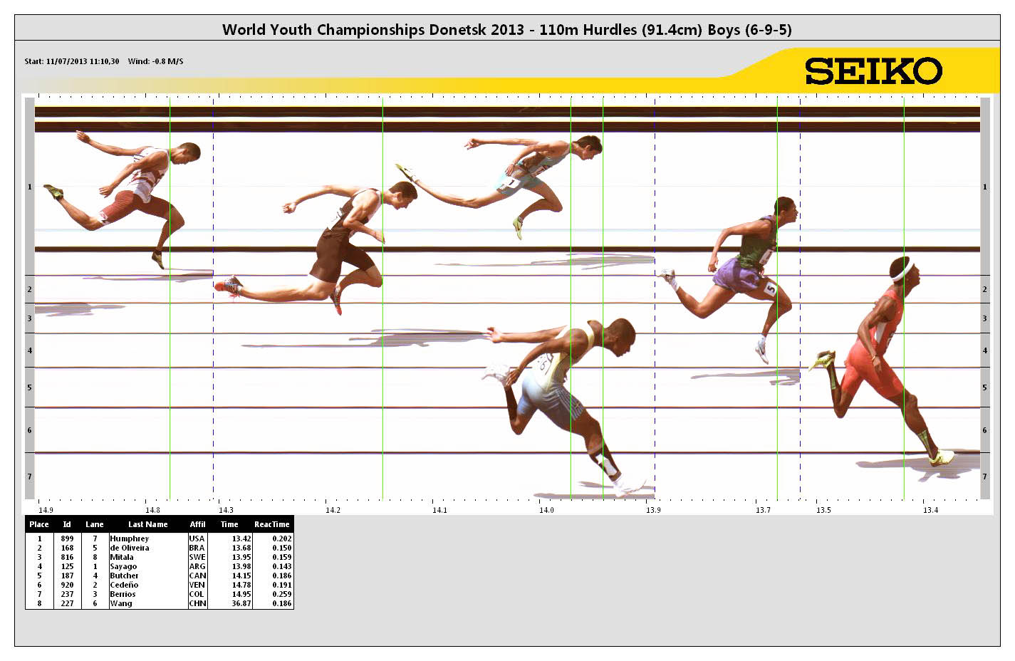 POS | BIB | ATHLETE | COUNTRY | MARK | Reaction Time | ||