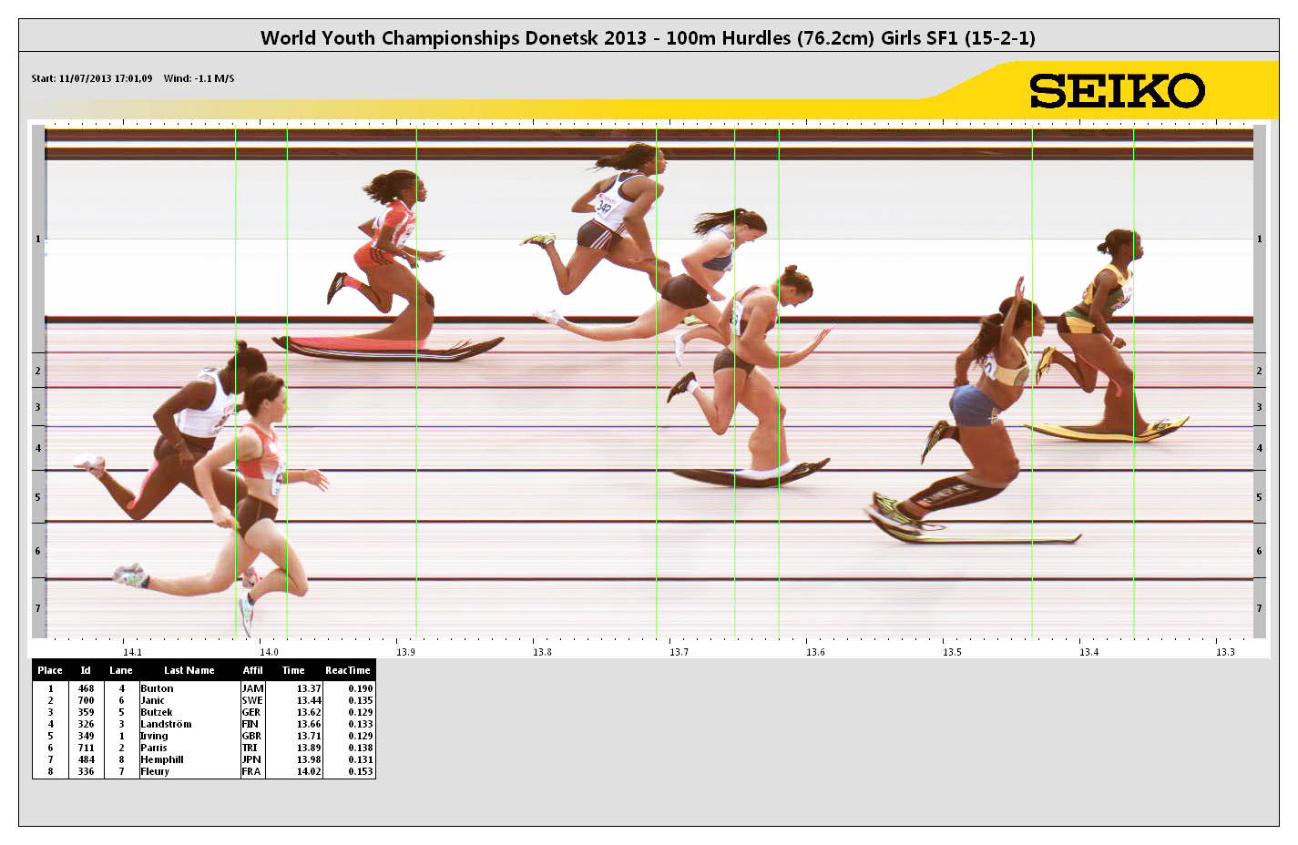 POS | BIB | ATHLETE | COUNTRY | MARK | Reaction Time | ||