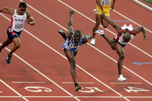 09 OCT 2012 Ladji Doucoure crosses the line en route to gold in Helsinki