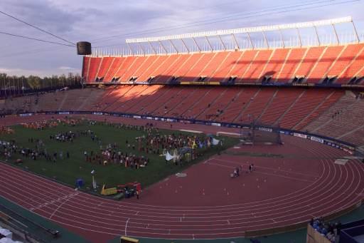 09 OCT 2012 Lidia Simon with the Romanian flag after winning the 2001 World Marathon title