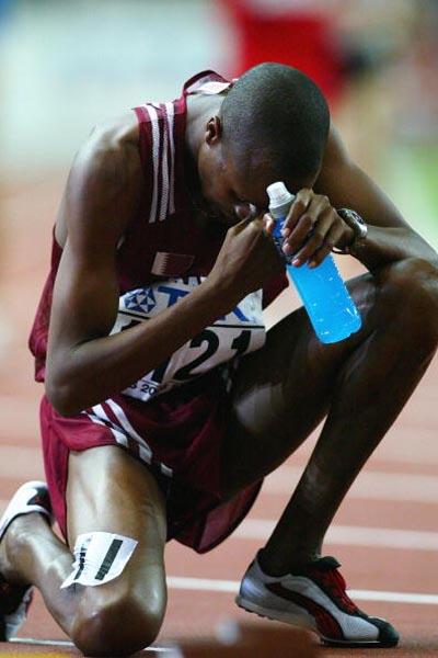 09 OCT 2012 Saif Saaeed Shaheen of Qatar celebrates winning the 3000m steeplechase