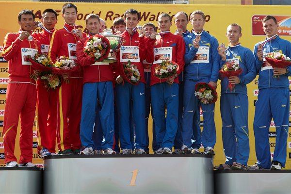 15 MAY 2012 The men's 50km Team podium: Russia, China and Ukraine