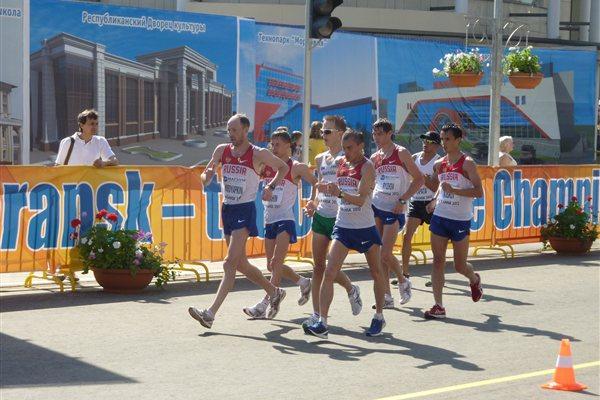 13 MAY 2012 Jared Tallent and the 5 Russian walkers leading in the 50km