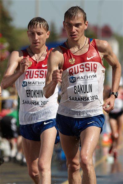13 MAY 2012 Sergey Bakulin and Igor Erokhin in action in the men's 50km race in Saransk