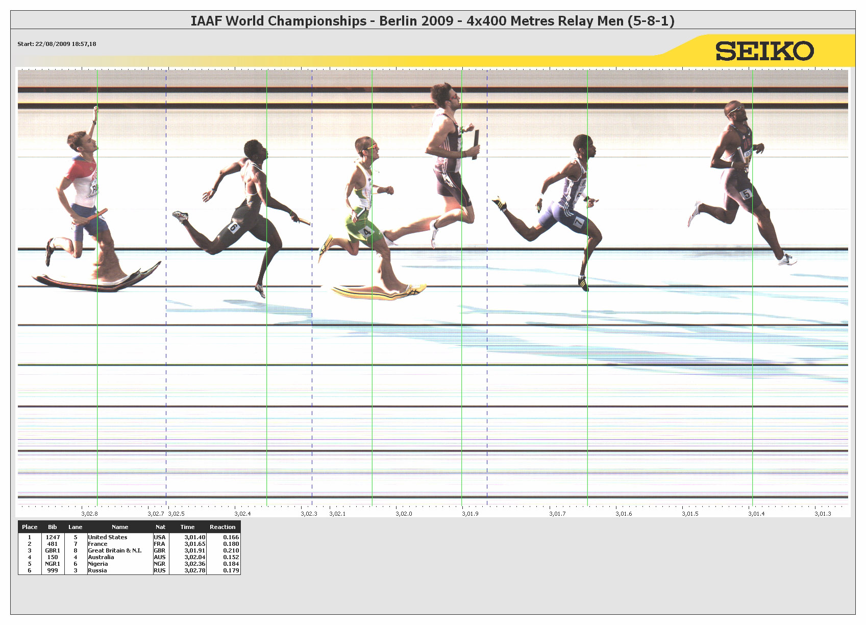 Viewing IAAF World Championships in Athletics > 12th IAAF World Championships in Athletics > 4x400 Metres Relay