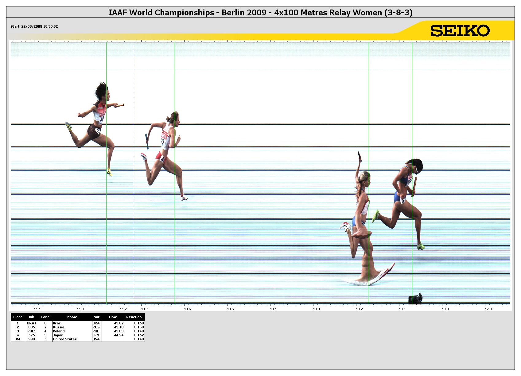 Viewing IAAF World Championships in Athletics > 12th IAAF World Championships in Athletics > 4x100 Metres Relay