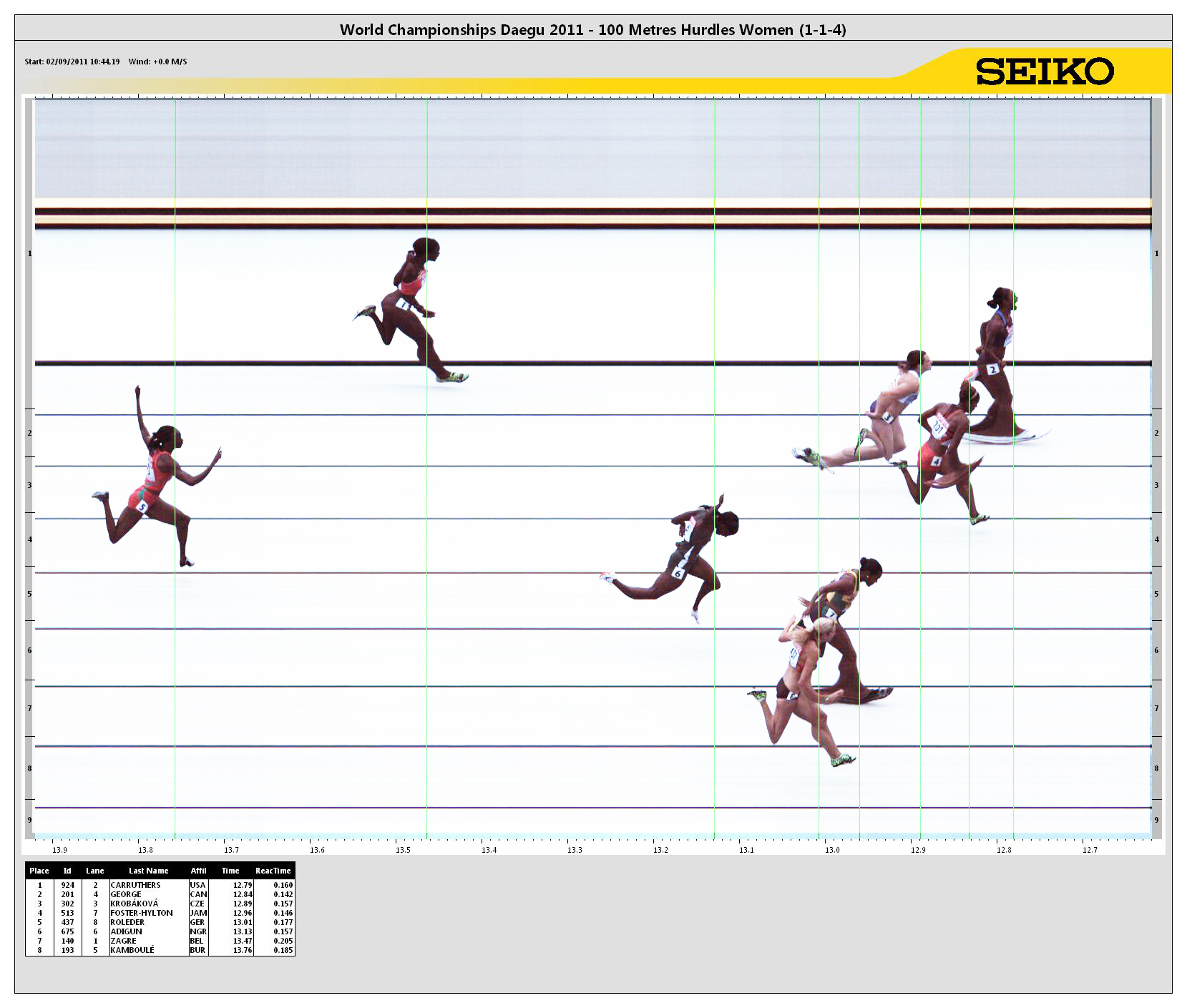 Viewing IAAF World Championships in Athletics > 13th IAAF World Championships in Athletics > 100 Metres Hurdles