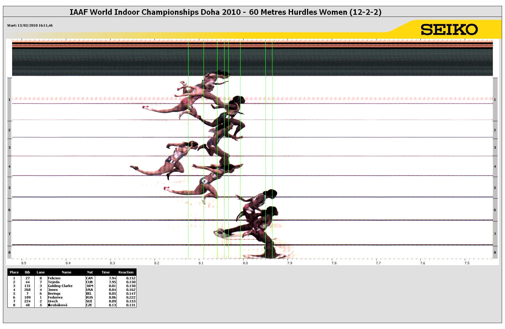 Viewing IAAF World Indoor Championships > 13th IAAF World Indoor Championships > 60 Metres Hurdles