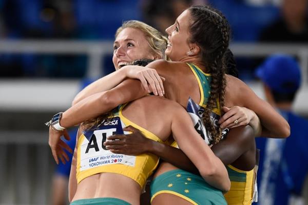 11 MAY 2019 The Australian 4x100m team at the IAAF World Relays Yokohama 2019